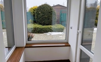 - technologia budowy: ławy żelbetowe, ściany murowane z pustaka ceramicznego 25 cm, ocieplone wełną 12 cm, otynkowany tynkiem szlachetnym; strop żelbetowy 12 cm; dach dwuspadowy o konstrukcji drewnianej, ocieplony wełną 15 cm, kryty blachodachówką; instalacje: prąd, woda i kanalizacja (sieć miejska), gaz, CO gazowe (kocioł dwu-funkcyjny), alarm, okna PCV.