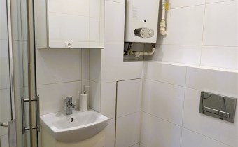 Na wyposażeniu pozostają: pralka automatyczna, TV, kanapa z funkcją spania, meble kuchenne, płyta indukcyjna, lodówka, w łazience kabina prysznicowa, umywalka, WC